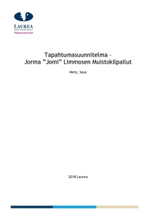 Opinnäytetyön tavoitteena oli tuottaa tapahtumasuunnitelma Helsingin Tarmolle eli Helsingin Työväenyhdistyksen voimistelu- ja urheiluseuralle. Muistokilpailut järjestetään jo edesmenneen tarmolaisen nyrkkeilijän Jorma ”Jomi” Limmosen muistoa kunnioittaen. Opinnäytetyön tuotoksen tarkoituksena oli tehostaa Jorma ”Jomi” Limmosen Muistokilpailut -tapahtuman suunnittelua sekä tuoda järjestelmällisyyttä tapahtuman tuotantoprosessiin.