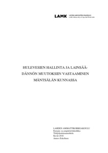 Opinnäytetyö tehtiin Mäntsälän kunnalle ja sen tarkoituksena oli kerätä yhteen hulevesien hallinnan järjestelyt Mäntsälässä sekä hulevesiin vaikuttavan lainsäädännön muutoksista aiheutuvat toimenpiteet. Toimenpiteet käsittelevät hulevesien hallinnan vastuunjaon, kunnossapidon ja rakentamisen järjestämisen sekä hulevesimaksun käyttöönoton.