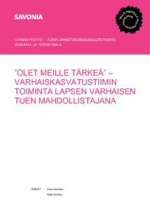 ”Olet meille tärkeä” – varhaiskasvatustiimin toiminta lapsen varhaisen tuen mahdollistajana