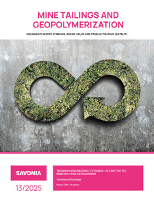 Savonia-ammattikorkeakoulun julkaisusarja : 13/2025 (Savonia-ammattikorkeakoulu, 2025)This literature review on mine tailings valorisation and geopolymerization has been written within the project Secondary waste streams, added value and productization (SETELIT), which will be realized from 1.3.2023 to ... -