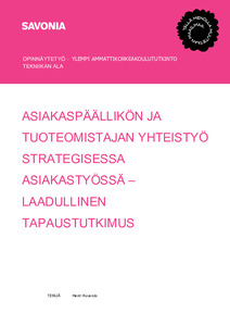 (2026)Tämän opinnäytetyön tavoitteena on tarkastella asiakaspäällikön ja tuoteomistajan välistä yhteistyötä strategisessa asiakastyössä sekä tunnistaa siihen liittyviä haasteita ja kehittämismahdollisuuksia. Tutkimus toteutettiin ... -