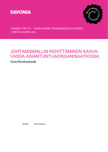 (2026)Tämän opinnäytetyön tavoitteena oli kehittää kohdeorganisaatiolle sen kasvua ja strategista johtamista tukeva, selkeästi roolitettu ja toimintamallit strukturoiva johtamismalli, joka vastaa kohdeorganisaation keskeiseen ... -