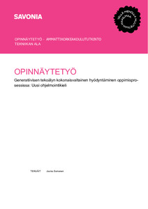 (2025)Opinnäytetyön tarkoituksena oli tutkia, kuinka generatiivista tekoälyä voitiin hyödyntää kokonaisvaltaisesti uuden ohjelmointikielen, Pythonin, oppimisessa. Työkaluna käytettiin GitHub Copilotia, tekoälypohjaista ... -