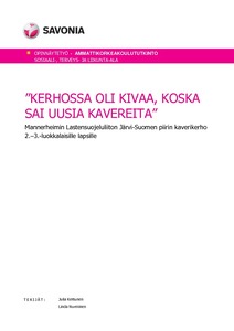 "Kerhossa oli kivaa, koska sai uusia kavereita" : Mannerheimin Lastensuojeluliiton Järvi-Suomen piirin kaverikerho 2.–3.-luokkalaisille lapsille