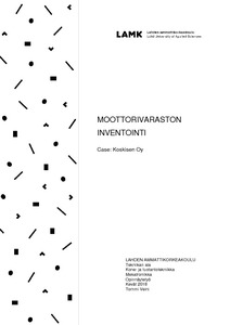 Opinnäytetyö käsittelee Koskisen Oy:n Järvelän yksikön vaneritehtaan moottorivaraston inventointia. Työn tavoitteena oli selvittää vanhan kunnossapitojärjestelmän paikkansapitävyys varastossa ja korjata puutteet sekä virheet. Tiedot päivitettiin uuteen kunnossapitojärjestelmään, jonka avulla moottoreiden löytyminen varastossa helpottui. Lisäksi suunniteltiin keinoja, joilla moottorivarasto pysyy jatkossakin järjestyksessä ja tarkistettiin lastulevytehtaan kunnossapidon varaosavaraston nykytilanne.