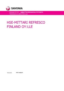 Opinnäytetyönä oli rankentaa Refresco Finland Oy:lle yrityksen tarpeisiin suunniteltu HSE-mittari eli turvallisuus, terveys ja ympäristö mittari, joka tukisi yrityksen HSE-toimintamallia. HSE-mittari suunniteltiin niin, että sen avulla toimintaa pystytään kehittämään. HSE-mittarin avulla piti pystyä todentamaan toimintaa ohjaavien järjestelmien vaatimuksia.