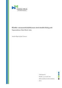 Tämän opinnäytetyön tavoitteena oli selvittää, miten kasvattaa lisämyyntiä hotellin vastaanoton henkilökuntaa motivoimalla. Tutkimuksen pääongelma oli, miten motivoida vastaanoton henkilökuntaa tekemään lisämyyntiä. Lähtökohtana työn tarkastelussa oli työterveyslaitoksen määritelmä motivaatiosta. Määritelmän mukaisesti viitekehys ja työn empiirinen osa jaettiin viiteen osaan: yksilön ominaisuudet ja kokemukset, töiden sisältö ja toimintaympäristö, työtä koskevat tavoitteet, töiden sisällön haastavuus ja kehittymisen mahdollisuudet sekä työtä koskeva palaute ja palkitseminen. Opinnäytetyön toimeksiantajana oli Sokotel Oy.