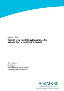 Opinnäytetyön tarkoituksena oli suunnitella ja toteuttaa Tulkoon joulu -hyväntekeväisyyskonsertti sekä sen markkinointiviestintä. Opinnäytetyön ensimmäisenä tavoitteena oli perehtyä tapahtuman suunnitteluun. Työssä painotetaan perehtymistä erityisesti musiikkitapahtuman suunnittelemiseen. Tapahtuman suunnitelmassa pohditaan aluksi sitä, miten järjestetään onnistunut tapahtuma. Tämän pohjalta lähdettiin miettimään konsertin taustoja, kohderyhmää sekä käytännön asioita.