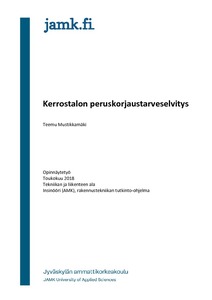 Opinnäytetyön tavoitteena oli kehittää asuinkerrostalojen korjaustarpeisiin sopiva, eri tasoisia korjausratkaisuja vertaileva selkeä toimintamalli työn tilaajalle. Opinnäytetyö toteutettiin yhteistyössä Sweco Rakennustekniikka Oy:n kanssa, joka toimi myös tämän työn tilaajana. Opinnäytetyön kirjoittajan vankka kokemus korjausrakentamisesta oli osaltaan vaikuttamassa aiheen valintaan.