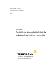 (2025)Väestön ikääntyminen on maailmanlaajuinen ilmiö. Tämän myötä geriatristen potilaiden hoidon osaamistaito korostuu ja sen myötä osastoille tarjottavan geriatrisen tuen tarjoamiselle on kasvava tarve. Tämän ylemmän ... -