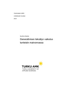 (2025)Opinnäytetyössä tarkasteltiin kuluttajien suhtautumista tekoälyllä tuotettuun mainosvideoon. Tarve työlle syntyi tekoälyn nopeasti lisääntyneestä käytöstä sekä rajallisesta tiedosta kuluttajien suhtautumisesta tekoälyn ... -