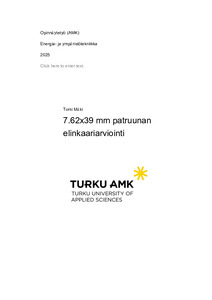 (2025)Tässä opinnäytetyössä tarkastellaan elinkaariarvioinnin (Life Cycle Assessment, LCA) soveltamista puolustusmateriaalien ympäristövaikutusten arvioinnissa. Tutkimuksen kohteena on 7.62x39 mm patruuna, jota Puolustusvoimat ... -