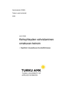 (2025)Tämän opinnäytetyön tavoitteena oli tutkia, miten valokuvan avulla voidaan vaikuttaa ihmisen minäkuvaan sekä miten omakuvien kautta voi tutustua itseensä ja kehoonsa. Opinnäytetyö vastaa tarpeeseen kehittää menetelmiä, ... -