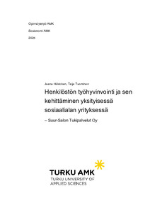 (2025)Opinnäytetyömme tavoitteena oli selvittää Suur -Salon Tukipalvelut Oy:n henkilöstön kokemuksia työhyvinvoinnin tämän hetkisestä tilasta sekä löytää kehittämiskohteita ja ratkaisuja työhyvinvoinnin parantamiseen. Toteutimme ... -