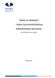 "Mulle on tärkeetä" - lasten hyvinvointitutkimus kehittämistyön perustana