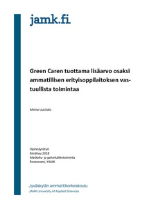 Opinnäytetyön tavoitteena oli selvittää, mitä lisäarvoa Green Care -toiminta voi tuoda ammatillisten erityisoppilaitosten vastuulliseen toimintaan. Tutkimuskysymykset koskivat Green Care -toiminnan lisäarvoa eri kohderyhmille sekä toimintatapojen uudistuksia ammatillisten erityisoppilaitosten organisaatiossa.