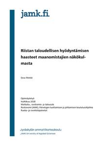 Opinnäytetyön tavoite oli selvittää riistan taloudellisen hyödyntämisen haasteita maan-omistajien näkökulmasta. Tarkoituksena oli löytää vastaus siihen miksi riistan taloudellinen arvo jää Suomessa lähes hyödyntämättä.