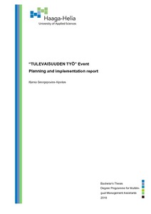 The idea behind this thesis was to plan and implement the event “TULEVAISUUDEN TYÖ – Tradenomin osaaminen kunnossa”, in collaboration with Haaga-Helia University of Applied Sciences and The Union of Professional Business Graduates in Finland. The purpose of the event was to present Haaga-Helia’s selection of studies to business graduates, to help further expand their skills.