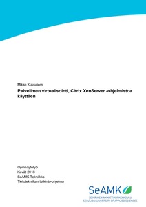 Opinnäytetyön tehtävänä on verrata Citrix XenServer- ja VMware-ohjelmistoja keskenään. Työ tehtiin opetusmateriaalikäyttöön oppilaitosta varten. Työ toteutet-tiin erillisessä demoympäristössä käyttäen luokassa A350.3 olevaa Fujitsu-palvelinlaitetta johon asennettiin XenServer-ohjelmisto ja sen alaisuuteen Win-dows Server 2016. Lisäksi työssä testattiin Microsoft Hyper-V Server 2016 -ohjelmistoa, joka tuli työn edetessä vastaan kilpailevana tuotteena. Tutkittavia asioita olivat, miten asentaa virtuaalikone XenServer- ohjelmistoon ja miten sitä pystyy hallinnoimaan.