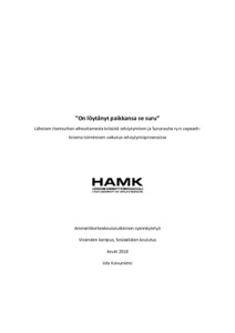 ”On löytänyt paikkansa se suru” : Läheisen itsemurhan aiheuttamasta kriisistä selviytyminen ja Surunauha ry:n vapaaehtoisena toimimisen vaikutus selviytymisprosessissa
