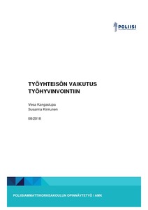 Tämä opinnäytetyö tarkastelee työyhteisöä ja sen vaikutuksia yksilön työhyvinvointiin. Tutkielman tarkoituksena on tuottaa uutta tietoa tutkittavien työyhteisöjen nykyisestä tilasta. Tutkimus myös vertailee vastaajien näkemyksiä työyhteisöstä valvonta- ja hälytyssektorin, rikostorjunta- ja tutkintasektorin, miesten ja naisten, sekä Mikkelin ja Seinäjoen poliisilaitosten vastaajien välillä.