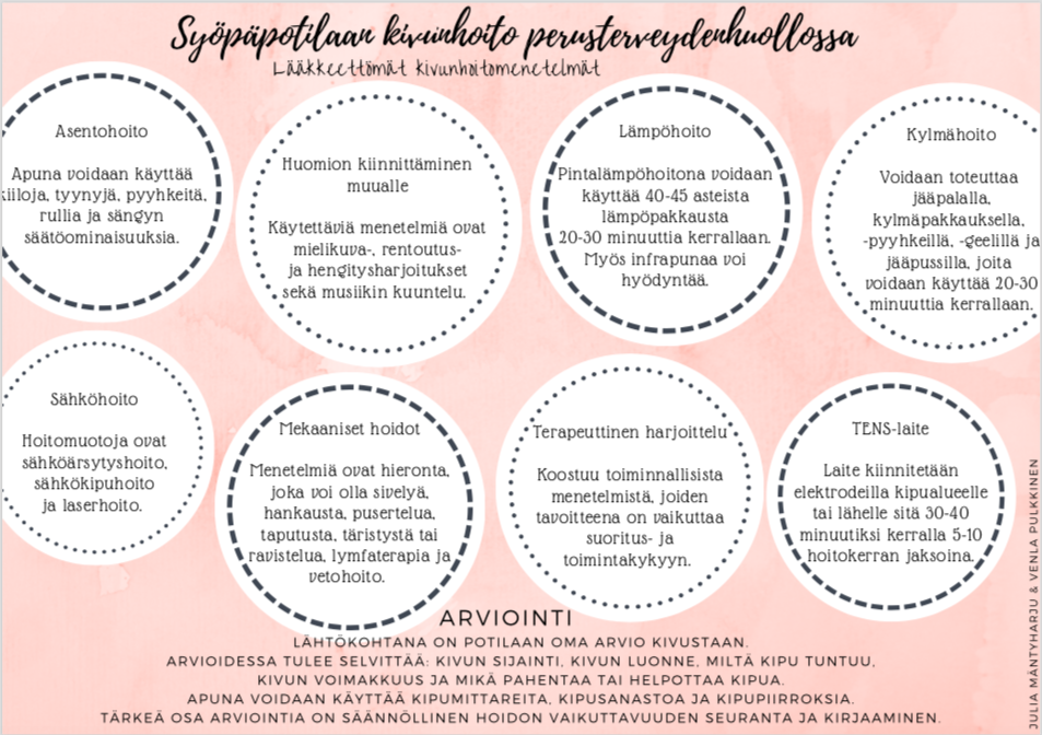 Syöpäpotilaan kivunhoito perusterveydenhuollossa : huoneentaulu lääkkeettömistä kivunhoitomenetelmistä ja kivun arvioinnista hoitohenkilökunnalle