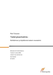 Opinnäytetyön tarkoitus oli kehittää ja käyttöönottaa tietämyksenhallinnan prosessi ketterin menetelmin ja luoda jatkuvan prosessikehityksen malli. Kohdeorganisaationa toimi ICT-alalla toimiva hieman alle 200 asiantuntijaa työllistävä yritys. Kohdeorganisaation tavoite oli kehittää tietämyksenhallinnan avulla henkilöstön osaamista ja työssä viihtymistä, ja näiden kehityksen kautta parantaa toiminnan tehokkuutta ja asiakastyytyväisyyttä. Prosessikehityksen lisäksi kohdeorganisaatiossa haluttiin tunnistaa tietämyksenhallinnassa tarvittavat järjestelmät, ja yhtenäistää käyttöä ja toimintatapoja selkeyden ja säästöjen saavuttamiseksi.