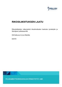 Rikosilmoituksen laatu : rikostutkijoiden näkemyksiä rikosilmoitusten laadusta Jyväskylän ja Seinäjoen poliisiasemilla