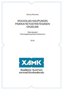 Tämän työn tavoitteena oli laatia Kouvolan kaupungille paikkatietostrateginen ohjelma seuraaville 10 vuodelle sekä sitä tukeva prosessi, jossa määritellään vastuut sekä aikataulu. Tavoitteena on strategista kehitystä tukeva säännöllinen paikkatietostrateginen ohjelmatyö.
