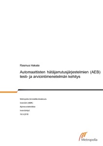 Tämän insinöörityön aiheena oli kehittää Tekniikan Maailmalle (TM) automaattisten hätäjarrutusjärjestelmien (AEB) testi- ja arviointimenetelmä. Tavoitteena oli, että testi perustuu liikenteessä esiintyviin todellisiin vaaratilanteisiin ja tuottaa vertailukelpoisia tuloksia. Lisävaatimuksia olivat helppokäyttöisyys ja kustannustehokkuus. Tulevaisuudessa tapahtuvaa kehitystä ajatellen oli mahdollistettava testitilanteiden ja arviointikriteerien päivitys.