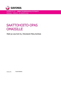 Opinnäytetyön tarkoituksena oli tuottaa saattohoitosuositusten mukainen saattohoito-opas Palvelukoti Pikku-Kerttulassa saattohoidossa olevan potilaan omaisille. Tavoitteena oli lisätä omaisten tietoa saattohoidon toteuttamisesta, edistää omaisten saamaa tukea sekä lisätä omaisten ja hoitohenkilökunnan välistä vuorovaikutusta.