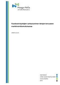 Työn tavoitteena oli kartoittaa suomalaisten Facebook-käyttäjien suhtautumista asiakasdatan keruuseen ja sen hyödyntämiseen kohdennetussa markkinoinnissa sekä onko GDPR:n voimaanastumisella että Facebookia koetelleilla kohuilla ollut vaikutusta käyttäjien suhtautumiseen tietosuoja-asioita kohtaan. Työ tehtiin kesän 2018 aikana ja sen tietoperusta pohjautuu ajankohtaisiin artikkeleihin aiheesta. Tietoperusta käsittelee markkinoinnin murrosta sosiaalisen median aikakaudella. Yrityksille on koko ajan tärkeämpää tietää, keitä heidän kohderyhmäänsä kuuluu ja mitä kohderyhmä haluaa. Facebook on ollut tämän muutoksen keskiössä ja saanut paljon kritiikkiä kyseenalaisista menetelmistään kerätä asiakkaistaan tietoa. Työn tutkimusmenetelmänä oli kysely, jossa hyödynnettiin kvantitatiivisia ja kvalitatiivisia kysymyksiä.