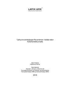 Opinnäytetyömme tavoitteena oli kehittää Rovaniemen Validia-talon hoitohenkilökunnan työhyvinvointia. Tarkoituksena oli työstää työhyvinvointiin liittyviä teemoja järjestämällä learning café -tilaisuuksia Rovaniemen Validia-talon hoitohenkilökunnalle.