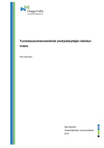 Tämän lopputyön tarkoituksena on selvittää tunnistautumismenetelmät yksityiskäyttäjän näkökulmasta ja esitellä eri tietoteknisiä tunnistautumismenetelmiä, kuten esimerkiksi mobiilivarmenne ja biometriset tunnistautumismenetelmät. Selvityksessä kerrotaan myös kyseisen tavan ongelmista sekä palveluntarjoajien että käyttäjän vastuista.