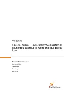 Nestekiertoisen aurinkolämmitysjärjestelmän suunnittelu, asennus ja huolto-ohjeistus pientaloon
