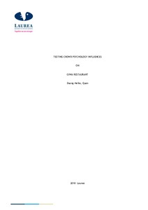 The thesis testing Crowd Psychology influences on Giwa restaurant demonstrates the process of creating a marketing strategy for the case company Giwa. The main idea of the thesis is to establish a marketing strategy base on Crowd Psychology theory from Gustave Le Bon and put the theory into reality test in the case company. The thesis uses various methods in both qualitative and quantitative categories, which are observation and interview. With the support from both literature review and research process, the research results in a marketing strategy. The result chapter will demonstrate the finding of the research process, which lead to the marketing strategy in the chapter also named marketing strategy.