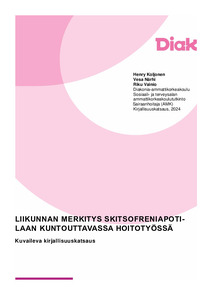 (2024)Opinnäytetyön tarkoituksena oli kirjallisuuskatsausta tutkimusmetodina käyttäen tutkia, kuinka paljon ja minkälaista liikuntaa käytetään skitsofreniaa sairastavien potilaiden kuntouttamisessa. Työn tavoitteena oli hankkia ... -