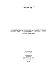 Työn tarkoitus on tuottaa tietoa Metsähallitukselle aloittelevista luontoretkeilijöistä. Tutkimme miten luontokohteen luonto sekä -palvelut vaikuttavat luontokokemukseen sekä omatoimisen luonnossa liikkumisen motivaatioon aloittelevilla luontoretkeilijöillä. Työn tavoite on tuoda esille tekijöitä, jotka edistävät luontoretkeilyn aloittamista.