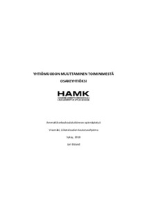 Yhtiömuodon muuttaminen toiminimestä osakeyhtiöksi