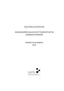 Tämän opinnäytetyön tarkoituksena oli perustaa asiakasraati Tukiranka ry Hiittenhovin tuetun asumisen yksikköön ja toteuttaa asiakasraadin kaksi ensimmäistä tapaamista. Työn tavoite oli tuoda asiakkaan ääni kuuluviin Hiittenhovin mielenterveyskuntoutujille suunnatussa tuetun asumisen yksikössä asiakasraadin avulla.