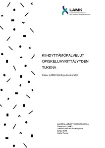 Opinnäytetyö käsittelee opiskelijayrittäjyyden tukemista kiihdyttämöpalveluiden avulla. Opinnäytetyö tehtiin toimeksiantona LAMK StartUp Accelerator -hankkeelle, joka rakentaa Lahden ammattikorkeakouluun monialaisen yrityskiihdyttämön. Tavoitteena oli selvittää, minkälaisia palveluita yrityskiihdyttämö tarvitsee, jotta se voi tukea opiskelijayrittäjää. Opinnäytetyön tarkoituksena oli kehittää opiskelijayrittäjyyttä sekä yrityskiihdyttämöpalveluita Lahden ammattikorkeakoulussa.