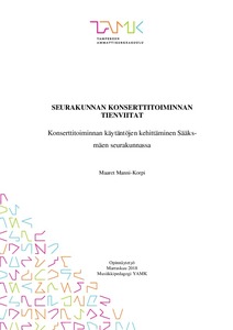 Opinnäytetyön aiheena oli konserttitoiminnan käytäntöjen kehittäminen Sääksmäen seurakunnassa. Sääksmäen seurakunnan strategia Tienviitat 2022 ohjaa seurakunnan toimintaa ja taloutta tulevina vuosina. Konserttitoiminta on osa seurakunnan musiikkityötä, jota tulee suunnata strategian viitoittamaa tietä. Tässä työssä pyrittiin etsimään vastauksia siihen, mihin asioihin tulee kiinnittää huomiota, jotta konserttitoiminta kehittyy Tienviitat 2022 osoittamaan suuntaan.