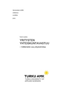 Opinnäytetyön tavoitteena oli kerätä yhteen tietoa yhteiskuntavastuun määritelmästä ja sitä ohjaavista periaatteista. Lisäksi opinnäytetyö antaa tietoa yritysvastuuraportoinnista ja olennaisista raportoitavista tiedoista. Näkökulma yhteiskuntavastuuseen ei ole erillinen muusta yrityksen toiminnasta, vaan se nähdään kiinteänä osana yrityksen liiketoimintastrategiaa. Opinnäytetyö havainnollistaa esimerkkien avulla mitä yhteiskuntavastuu on, miten se ilmenee, miten siitä tulee raportoida ja mitä hyötyä siitä on yritystoiminnalle.