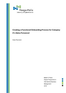 This thesis focuses on the sales onboarding aspect and aims to discover the factors leading to successful sales onboarding. The objective of the thesis is to create a functional onboarding process for company X’s sales personnel.