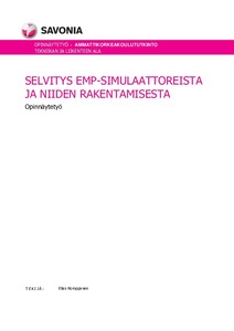 Tämä työ oli pääosin selvitystyötä, jonka tarkoituksena oli rakentaa pohja Savonian EMP-simulaattorin rakennushankkeelle. Työn eteneminen jakautui kahteen osaan, joista ensimmäinen oli EMP-testausta käsittelevien standardien ja raporttien opiskelua sekä tämän tiedon tiivistämistä. Työn toinen osa koostui syöksyjännitegeneraattorin tutkimisesta ja selvityksestä, kuinka sen tuottama jännitepulssi saataisiin sopivaksi EMP-simulaattoriin.