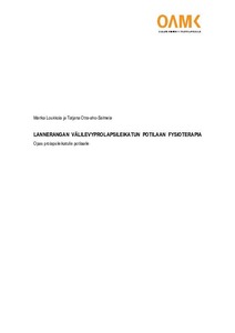 Tämän toiminnallisen opinnäytetyön tuotoksena valmistui lannerangan välilevyprolapsileikatun potilasopas. Oppaan avulla tuetaan välilevyprolapsileikatun itsenäistä harjoittelua ja kuntoutumista leikkauksen jälkeen. Potilasoppaasta hyötyvät oppaan kohderyhmänä olevat potilaat ja OYS:n fysioterapeutit, jotka voivat hyödyntää opasta postoperatiivisen ohjauksen tukena. Oppimistavoitteinamme olivat projektityöskentelyn, tuotekehitysprosessin ja tiedonhaun hallinta. Halusimme syventää tietämystä operatiivisesta -ja välilevyprolapsileikatun fysioterapiasta sekä kehittää ammatillisia vuorovaikutus -ja viestintätaitojamme.