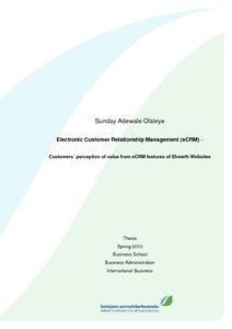 Electronic Customer Relationship Management (eCRM) : Customers` perception of value from eCRM features of Ehmeth Websites