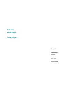 Tämän opinnäytetyön tavoitteena oli perehtyä esimiesteoriaan, ja peilata siihen omaa esi-miestyötä ja näin ollen löytää kehityskohteita omasta työstä.