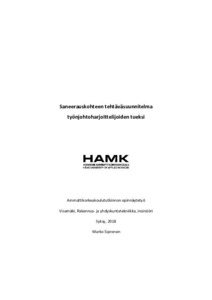 Opinnäytetyö tilattiin NCC:n toimesta. Tavoitteena oli luoda tehtäväsuunnitelma saneerauskohteesta työnjohtoharjoittelijoiden tueksi, että minkälaista saneerauskohteessa työskentely on, mitä on hyvä tiedostaa ennakkoon ja mihin asioihin kiinnittää huomiota koko projektin aikana. Tehtäväsuunnitelman avulla työnjohtaja voi tiedostaa tulevia riskejä liittyen laatuun ja työturvallisuuteen sekä kustannuksiin ajoissa. Opinnäytetyö kuvaa ongelmia, joita saneerauskohteessa esiintyy.