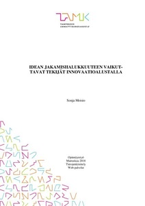 Idean jakamishalukkuuteen vaikuttavia tekijöitä tutkittiin lomakekyselyllä, jonka tuloksia opinnäytetyössä analysoidaan. Opinnäytetyö alkoi kolmen idean jakamissivuston vertailulla ja eteni tutkimusdatan analysointiin. Lopuksi opinnäytetyön tuloksina selvisi, millä tekijöillä innovaatioalusta pystyisi alentamaan käyttäjien kynnystä idean jakamiseen. Tuloksista selvisi myös, mitä kannattaa huomioida innovaatioalustan ulkoasun suunnittelussa ja onko tulosten ja vertailussa käytettyjen idean jakamissivustojen välillä yhtäläisyyksiä.